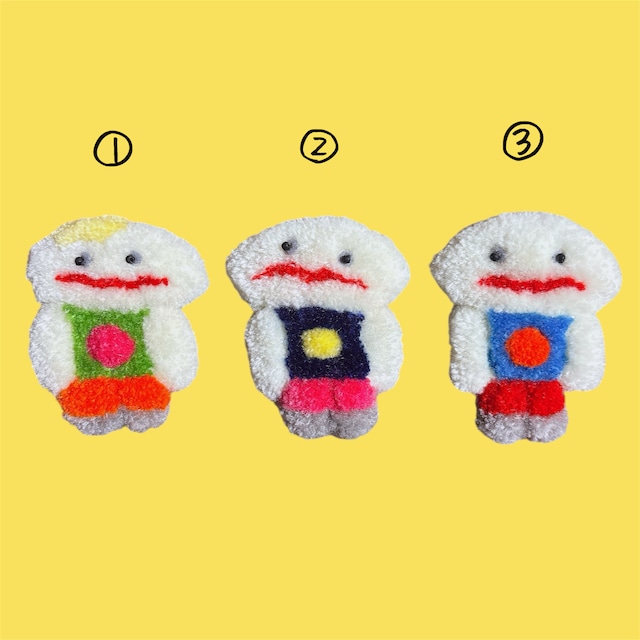 ライスメロンちゃんのブローチです。 ①カレーライスメロンちゃん (頭についている黄色はカレーです) ②ぼーっとしているライスメロンちゃん ③背筋ピーンライスメロンちゃん ブローチはパンチニードルで作成しました。 すべて1点ものとなります。 サイズ:タテ約8.5cm×ヨコ約6.5cmほど 素材:毛糸 刺繍糸 ビーズ フェルト 合皮 購入の際の注意点 トラブル防止のため、以下の注意点を必ずお読みください。 強い衝撃を与えたり引っ張っる等は毛が抜けたり破損する可能性がございます。お取り扱いには十分にお気をつけください。 ●お使いの端末や閲覧環境により、写真と実物の色味や質感、サイズ感が多少異なって見えることがございます。 技法の性質上、引っかけに弱いつくりです。 尖ったものやマジックテープに引っかけないようお気をつけください。 ブローチピンを使用している為、小さなお子様はご注意ください